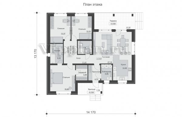 | Размеры дома: | 14.17м×13.17м |